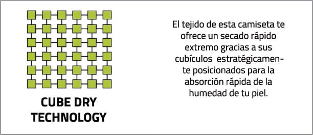 Su tejido técnico combina Cube Dry Technology y Ultra-Stretch 4 Way, lo que garantiza un secado ultra rápido y libertad de movimiento total. Además, cuenta con protección solar UPF40+ para entrenamientos y expediciones al aire libre.