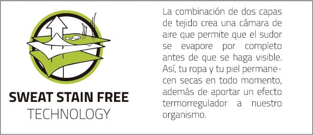 Tejido de secado rápido que evita la sensación de humedad y enfriamiento después del esfuerzo. -