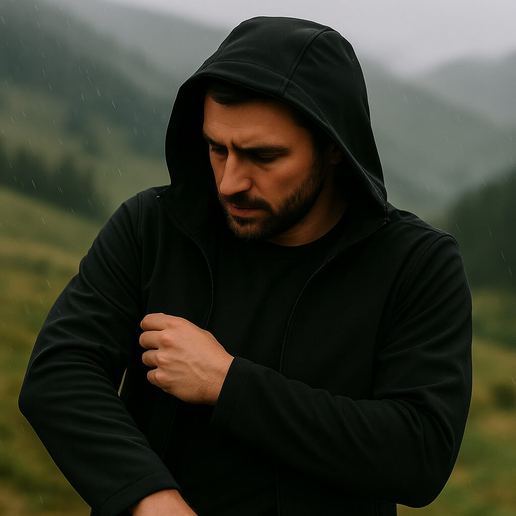 Capucha con visera integrada: Protección adicional en condiciones cambiantes, diseñada con una visera curva de perfil bajo que desvía la lluvia sin restar visibilidad.